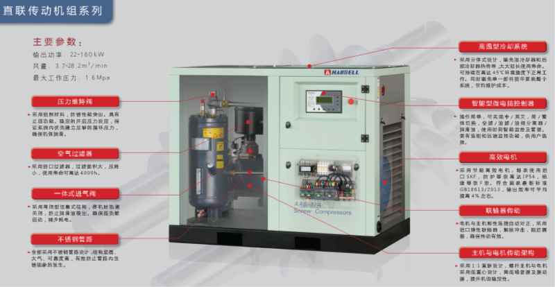 漢鐘牌AE6系列電動皮帶式靜音節(jié)能福建廈門螺桿式空壓機