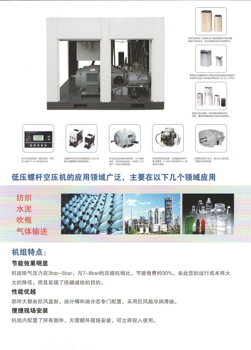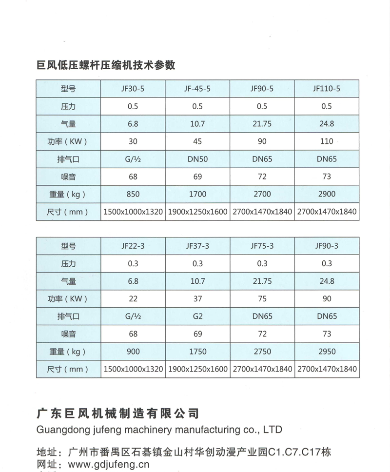 巨風(fēng)牌JF-(0.3MPa~0.5MPa)低壓大氣量螺桿式空壓機(jī)