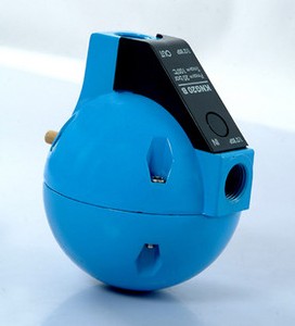 水在排水器里累積,達到一定水位之后,浮力大于空氣壓力,空氣瓶上浮,排水口打開,水在氣壓作用下排出,同時浮力減小,空氣瓶下降堵住排水口。