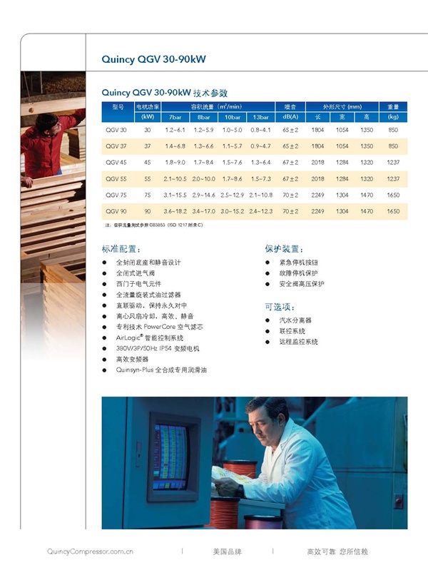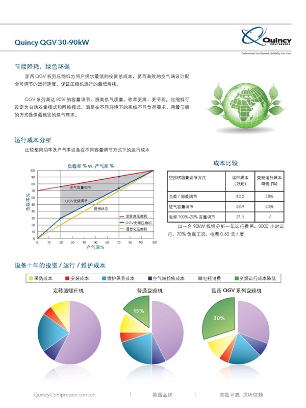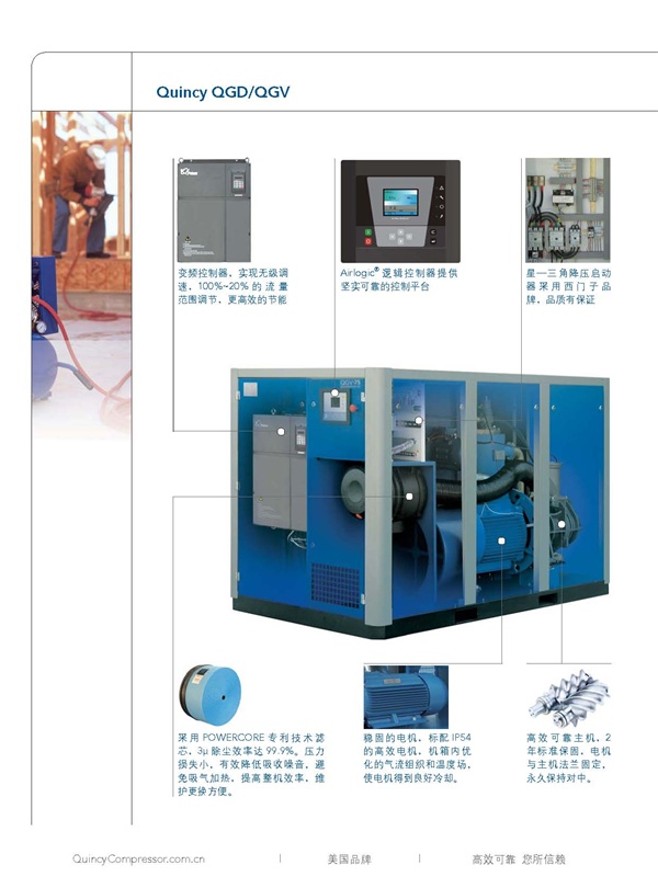 昆西QGV QGV系列變頻螺桿式空氣壓縮機30--90KW